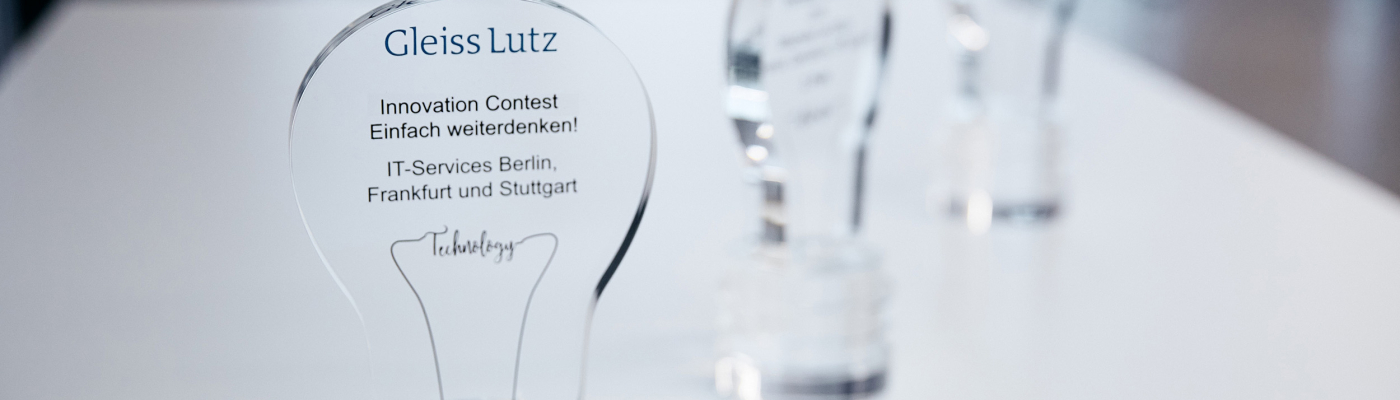 Die Zukunft ist für uns bei Gleiss Lutz nichts, was in weiter Ferne liegt. Sondern etwas, das wir jeden Tag gemeinsam gestalten. Dazu gehört der Mut, neu zu denken. Offen zu sein für andere Sichtweisen und Wege. Auch auf die Gefahr hin, einmal zu scheitern. Dann heißt es: Wieder aufstehen, die richtigen Schlüsse ziehen und einen neuen Plan entwickeln. Genau dieses Mindset wollen wir weiter entwickeln und fördern. Mit unserem Innovation Contest.