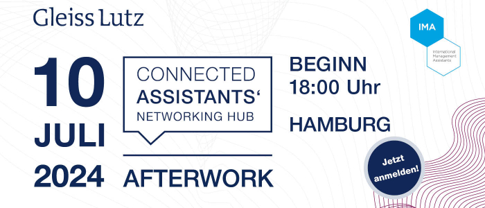 Über Mentoring, Karrieren von Assistants, KI, bereichernde Begegnungen und den Aufbau des ganz persönlichen Netzwerks sprechen wir gemeinsam mit Expertinnen, Experten, Assistenzen und Vertreterinnen des Verbandes IMA - International Management Assistants Deutschland. Impulse an diesem Abend setzen das Gleiss Lutz-Referatsteam und Diana Brandl, Katharina Krentz und Claudia Marx im „Office Business Talk“.