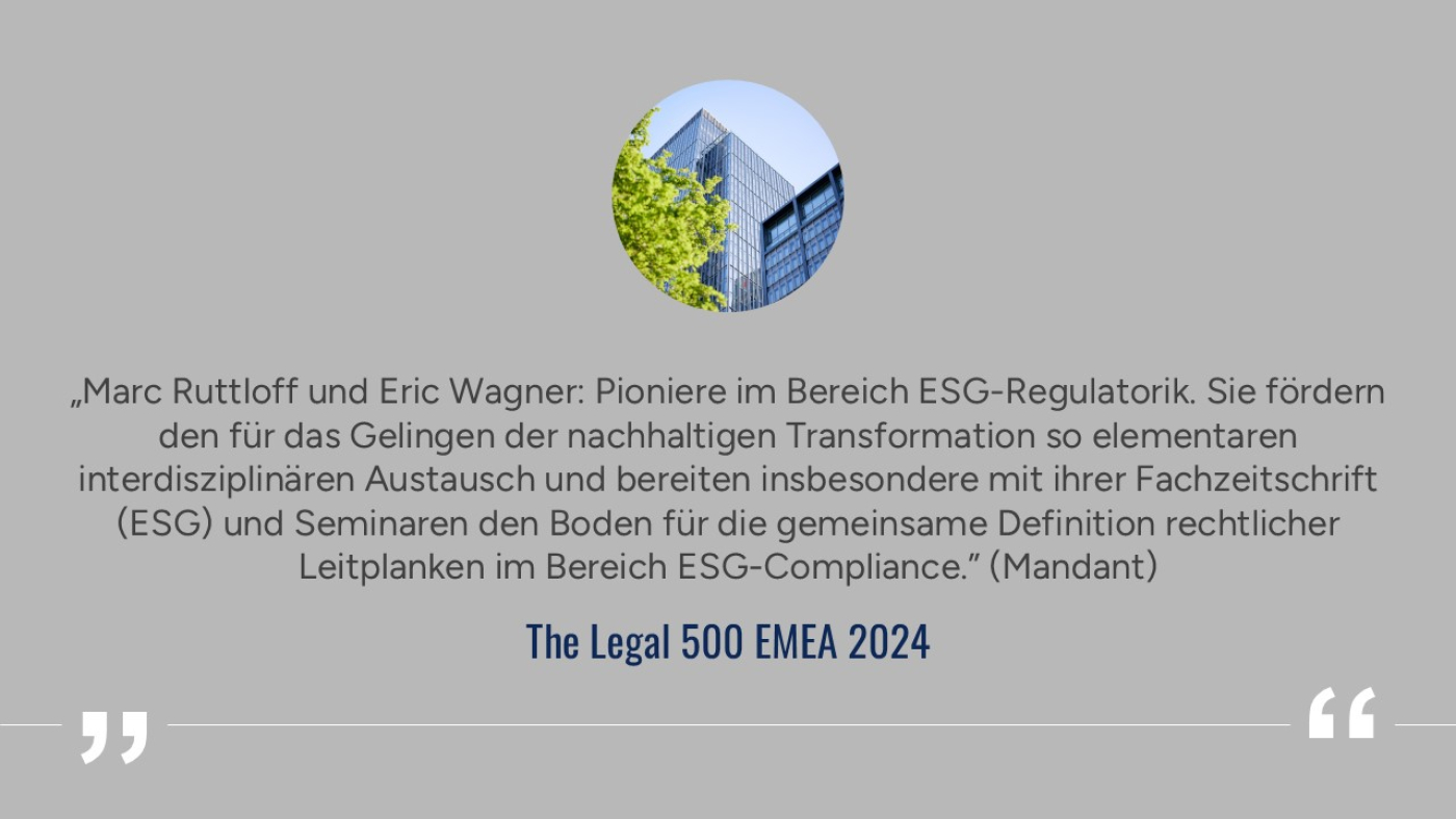 - Führende LinkedIn-Gruppe im Bereich ESG mit ca. 1.000 Mitgliedern (Wagner|Ruttloff|Rothenburg)