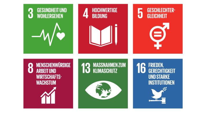 Gleiss Lutz bekennt sich zu den zehn Prinzipien (Ten Principles) sowie den 17 nachhaltigen Entwicklungszielen (Sustainable Development Goals) des UN Global Compact. Unsere kanzleiweiten ESG-Grundsätze orientieren sich insbesondere an den abgebildeten sechs SDGs, weil wir glauben, hier als Anwaltssozietät in besonderer Weise Wirkung entfalten zu können.