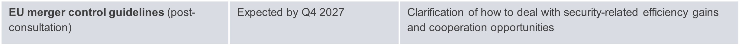 - Merger control and FDI screening remain key review mechanisms, as mergers in security-relevant sectors generally require official authorisation.