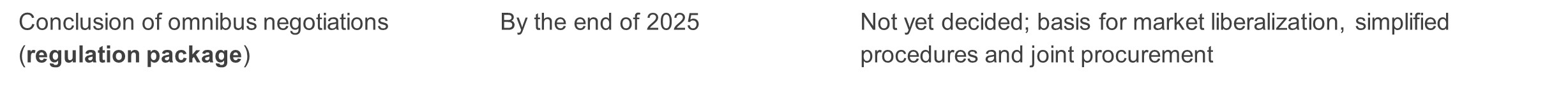 - Omnibus package still in the legislative process: Key simplifications to procurement and transfer procedures are still subject to agreement in the Council and Parliament.