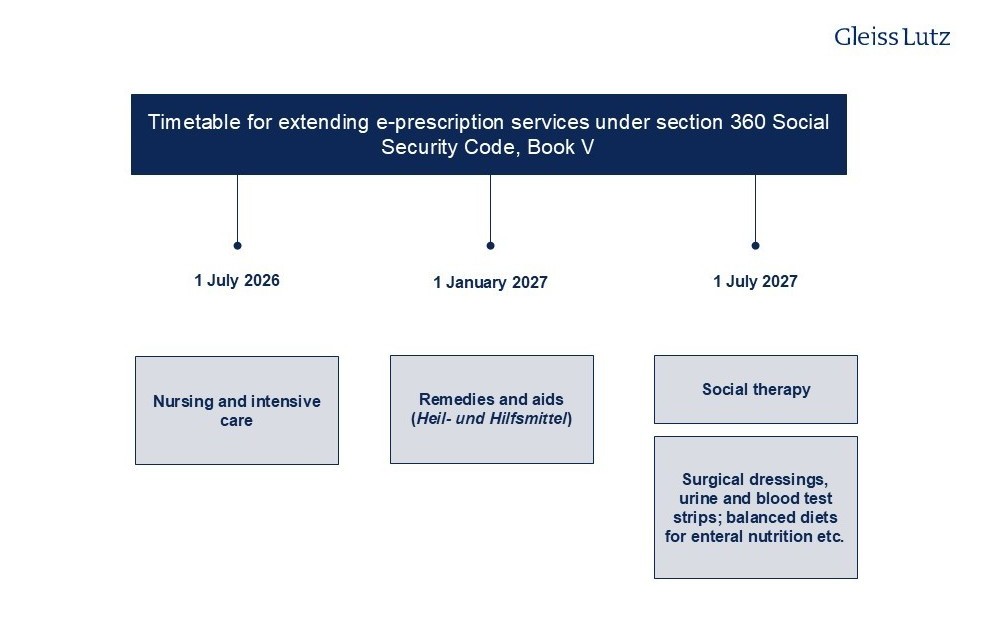 - The following overview shows the schedule for extending e-prescriptions to other services: