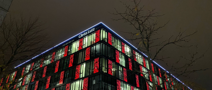 Gleiss Lutz has again sent a visible signal against violence against women as part of the “Orange the World” campaign. In the evening and night hours of 25 November, the entire Stuttgart office building was lit up in orange. The Frankfurt office also took part, illuminating the conference area on the 16th floor in orange as well.